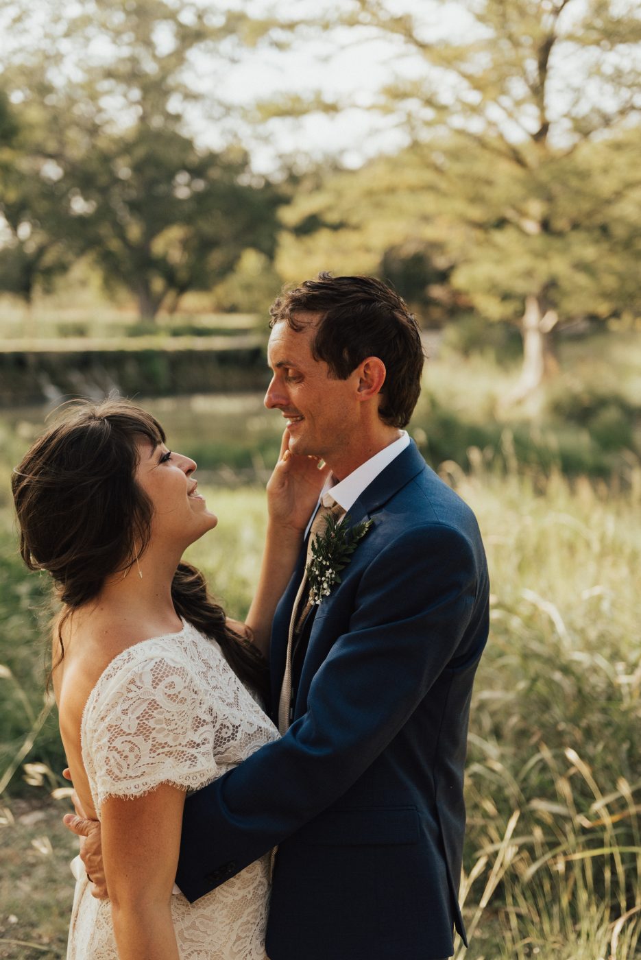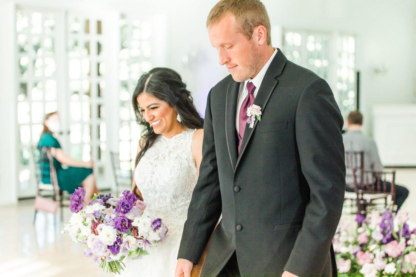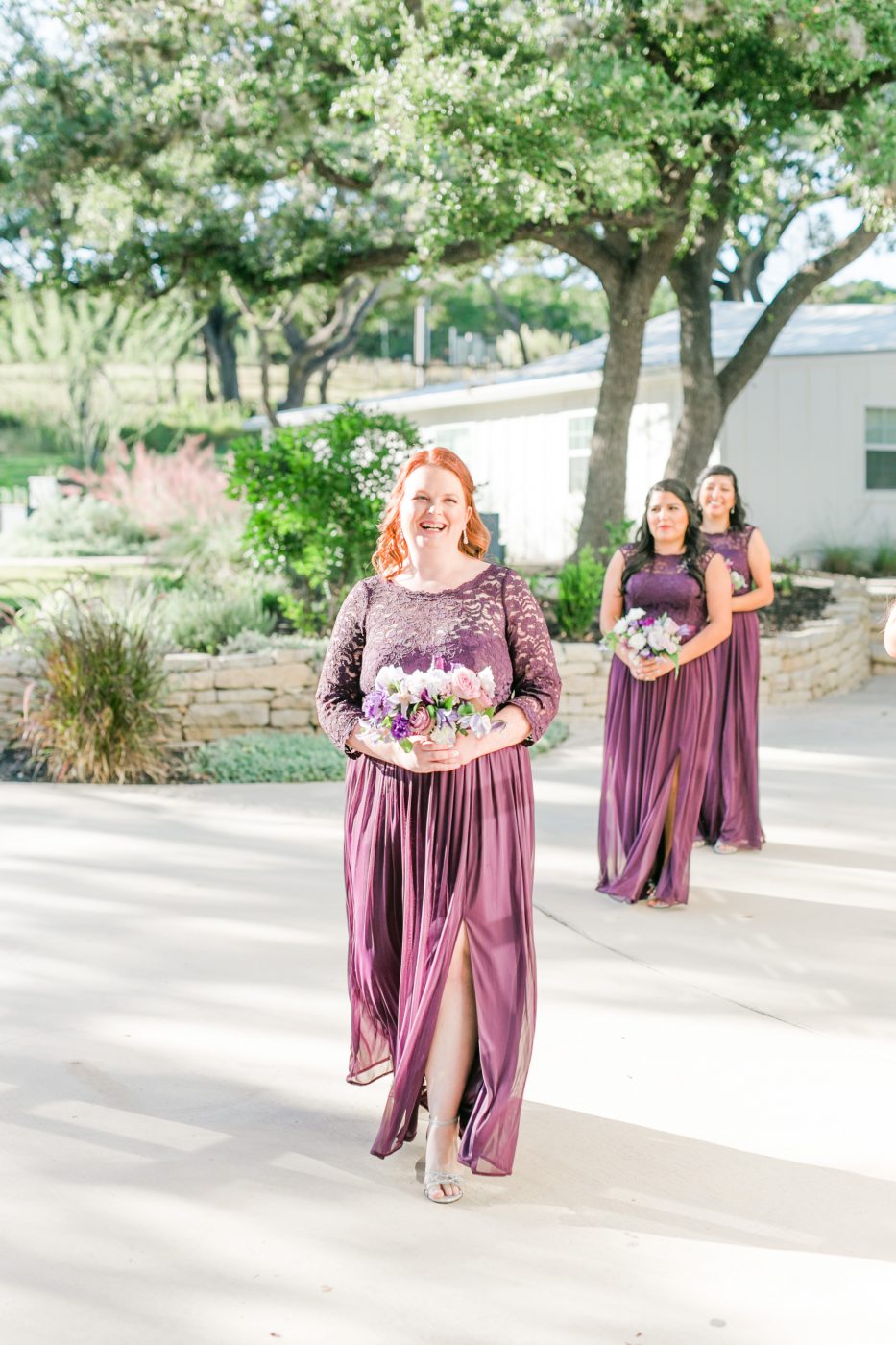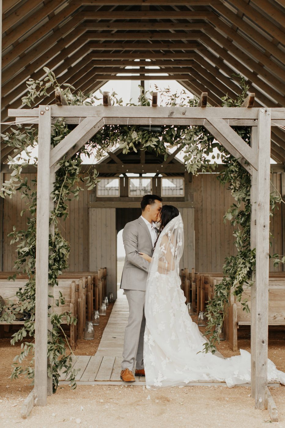 The couple visited The Ivory Oak in Wimberley, Texas in December of 2019. One look was all it took for them to know that this was the perfect location for their wedding. The main barn with its white high ceiling and sparkling chandeliers added to the dreamy fairytale vibe Violet envisioned. Every moment was captured by Allison Jeffers and executed by Kristin Shrimplin from Elaine and Lee coordination.